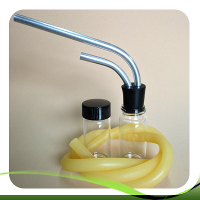 ASPIRADOR BUCAL – VIALES DE CRISTAL Este aspirador permite recolectar muestras directamente en frascos de cristal que posteriormente se llenan con alcohol. Fabricado en aluminio, látex natural y cristal. El tubo de escape de aire está protegido con una fina malla de 220 hilos por pulgada. |