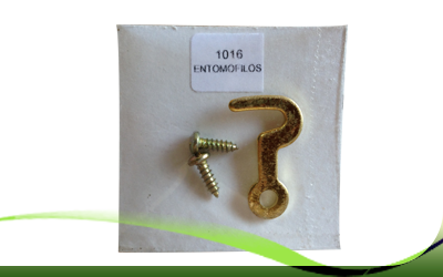 GANCHO DE SEGURIDAD PARA CAJAS ENTOMOLOGICAS. Empleados para asegurar las tapas de las cajas entomológicas y evitar que se abran accidentalmente. Fabricadas en latón color dorado. |