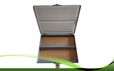 CAJA ORGANIZADORA, 25 PORTAOBJETOS, PLASTICO ENDURECIDO. Plástico resistente con tapa de ajuste hermético, capacidad para 25 portaobjetos, cuenta con índice de líneas impresa en la cubierta. Dimensiones: 108 x 83 x 32 mm. |