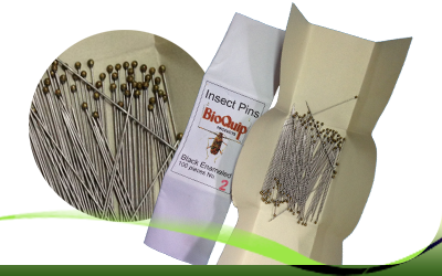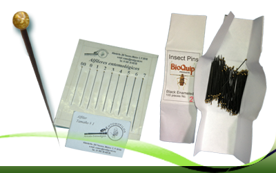 ALFILERES ENTOMOLÓGICOS Alfileres de acero con terminado en color negro y cabeza de nylon: Especiales para montaje de insectos, existen de diferente grosor de acuerdo al insecto que se pretende montar. El número está relacionado con su grosor de la siguiente manera 000, 00, 0, 1, 2, 3, 4, 5, 6, 7. Entre más alto es el número mayor es su grosor. |